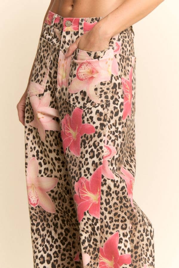 Leopard Floral Wide Leg Pants