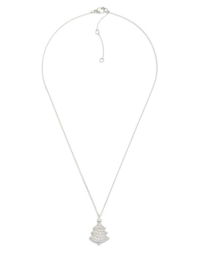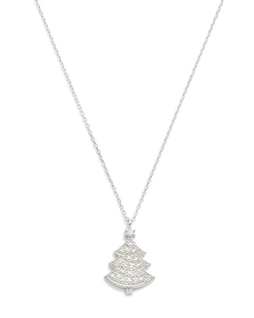 Silver CZ Christmas Tree Necklace